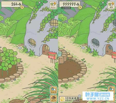 「青蛙旅行」#iOS#Android 没错,大家所说的便是这款「旅かえる」的游戏APP,中文名称为「旅行青蛙」,由著名游戏公司HIT-POINT新出的一款休闲放置类小游戏。啥?HIT-POINT没听说过,那相信你一定听说过另外一款爆款游戏「猫咪后院」,也是它家的作品。游戏简单来说是这样子的:主角是一只可爱的小青蛙,你可以给它取名字。通过收集三叶草去商城买东西,有食物、幸运符、道具。青蛙带着这些东西就会出门旅行,然后旅行途中会邮寄照片,回来还会给你带当地的土特产。Emmmm...至于你问我为什么好玩?大概是这只小青蛙的一切行动不受你的控制,养青蛙儿子需要一些随缘吧...目前原版游戏只有日文版的,其实游戏的玩法是很简单的,主要难点是游戏语言是日文的,所以大家刚上手的时候会感到有点蒙。所以猿仔通过这几天体验3dm的安卓汉化版和原版进行左右比对,帮助大家更好地了解这款游戏APP。 1、游戏的场景只有庭院和室内 2、先来说下庭院吧,庭院内上方为【菜单】,包括【持有物】、【记录】、【帮助】三个子菜单。(PS:汉化版的这里“里屋”应该是“记录”,希望汉化进行改正下)
