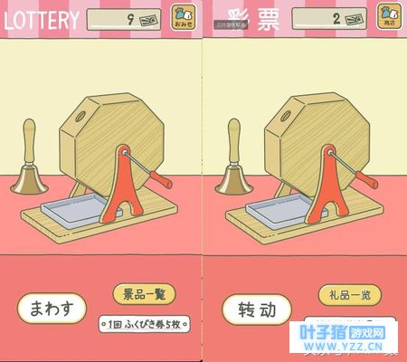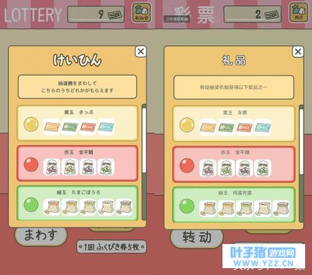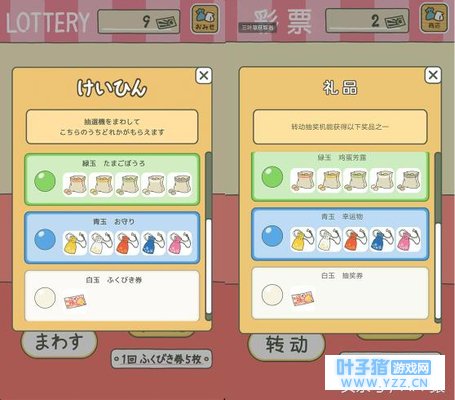 4、【商店】中的右上方可以【抽奖】,一次抽奖需要5张抽奖券,抽奖券获得方法: ①、在商城买东西随机赠送; ②、青蛙旅行带回来(一般是一张); ③、看蜗牛君给的广告; ④、喂蜗牛之后蜗牛的谢礼 ⑤、抽到白球后返还一张