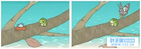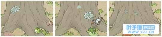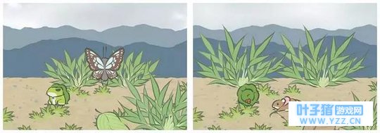 ❤ 蛙蛙的背包(蓝色方格)和桌子(黄色方格)如果都空着,就有可能会离家出走哦,一定记得给在桌子上(黄色方格)放好食物,他会自己回来装的。 Tip: 装背包(蓝色方格)需要按一下按钮,摆桌子(黄色方格)只需要把东西放进格子就行,不需要按按钮。 ❤ 四叶草一定要带上,会多拿很多礼物回来。 ❤ 买食物有几率得到抽奖券,后期草多的情况下,可以买便宜的食物刷劵,不过几率是随机的哦。 明信片收集 在进入正题之前,有一个小地方要注意:游戏内相册只能存图10页,也就是60张,所以别忘了及时把图存到手机里。 存图/分享: 点击明信片左下角第一个图标(垃圾桶左边)。 普通明信片 获取难度:容易~一般 特点:无名景色 蛙蛙的动作表情,天空颜色,云,苔藓,树叶的位置都是随机的 。所以即使很容易获得,也会因为随机性产生很多有趣的照片。 ↓随便贴几张照片,蝴蝶老鼠螃蟹都可能出现,种类有很多。 ❤ 草丛 容易获得,不管带什么都有可能出现