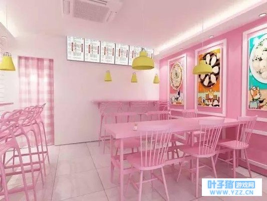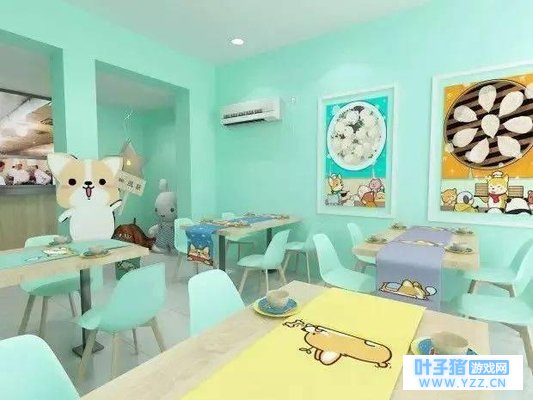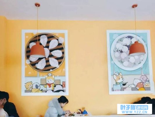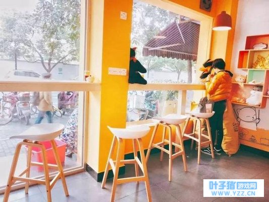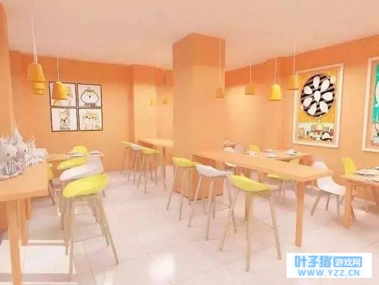 再来继续看看店铺,整个墙壁用了温暖的橘黄色再配上可爱的动画插图