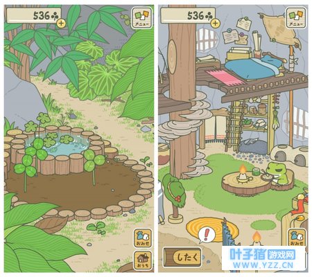 总的来说这款游戏的内容基本就是收割随机出现的三叶草给随性青蛙准备食物及具有其他功能的物品,蛙蛙心情好就会出去旅行拍照寄明信片还有物品回来给你这个瞎操心的老母亲