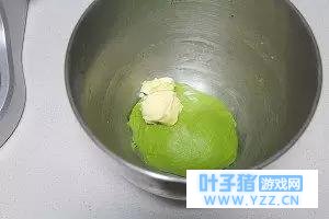 2.先揉成一个光滑的有韧性的面团,然后放入室温软化的黄油。