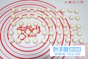 7.把欧克皮面团平均分成50份,揉圆。
