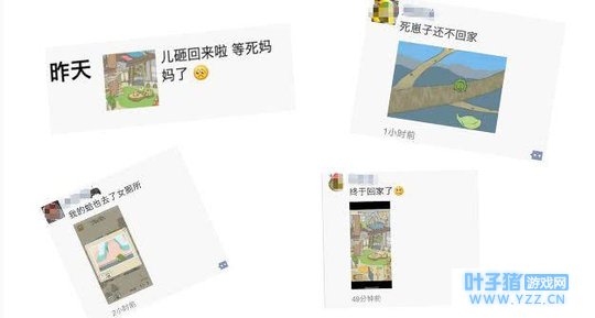 而在你牵挂过程中,还会产生“操心”以及“碎碎念”,这就成为了玩家之间传播的内容。你就像一个操碎心的父母,和邻里街坊抱怨着你家孩砸多不省心。只不过真正的父母可能是在小区门口干这事儿,而你是在手机里的社交平台上。 朋友圈、微博,不都在传播着你的好友对儿砸的“牢骚”?然而除了抱怨,还有炫耀。小时候你的爸爸妈妈会因为你考了前十而骄傲,你在《旅行青蛙》里也会因为儿砸回家给你带了好的纪念品而欣喜。难道你不想在朋友圈里晒晒儿砸有多孝顺吗?你一定会的。