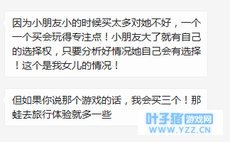……我似乎忽略了青蛙不会选择的这个问题。 但是没关系,这可以反映出父母们都会优先考虑小孩的意愿,而不是直接做决定。 然后我做出了条件限制:小孩不会做决定。 在这里的时候我还是想简化问题为“数量or质量”的选择。 但是很明显我这样没做过爹妈的单身狗跟真正为人父母者想的东西是不一样的。养蛙毕竟不是养小孩。 尽管几乎所有父母都选择“买一种、同类型里最好的”。但是理由却跟我起初估计的不太一样。 并不是“要给孩子最好的”这么简单。 比如说,不能满足所有欲望。