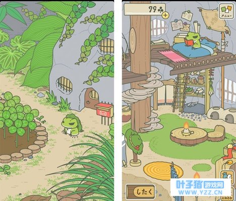 虽然游戏的界面都是满屏不认识的日语,不过,这一点也不影响慈母们的兴趣。养青蛙的人都知道,这款游戏简直就是佛系生活的正实写照。游戏场景,集中在青蛙的小木屋和屋外的小花园内,有钱没钱,场景和原木系的自然装饰,都不会改变。白天黑夜,仅靠屋里点燃或熄灭的蜡烛为准。