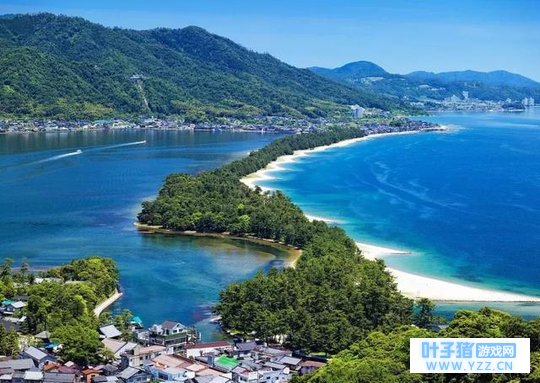 京都府:天桥立 天桥立是京都府北部的风景胜地,在分隔了阿苏海与宫津湾、全长约3.6km的沙洲上,共种有8000余株茂盛的松树。这里与宫城县的松岛以及广岛县的宫岛并称日本三景,据说是由于其形状看似天上舞动的白色架桥,故而得名"天桥立"。