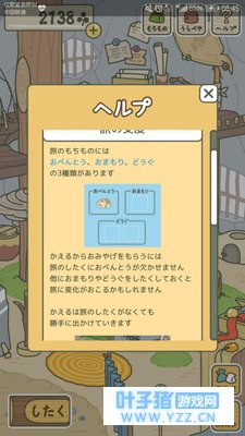 旅行的消耗有三种:便当,护持物,道具 想要得到青蛙旅行回来的礼物,便当是不可或缺的,其他东西可以不放,但是其他物品的添加,有几率会改变旅途