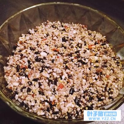 2 浸泡 将六种米放入同一个碗中,加入水,加入枣,浸泡两个小时
