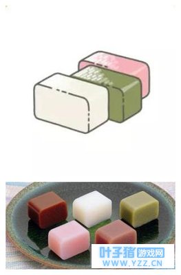 而蛙去旅游带回来的食物是当地的特产手信 名古屋城“外郎” “外郎”是“和菓子”的一种 日本不同地区“和菓子”有着不同的风味 名古屋的外郎由于多采用黑糖为原料,所以外观呈红色。