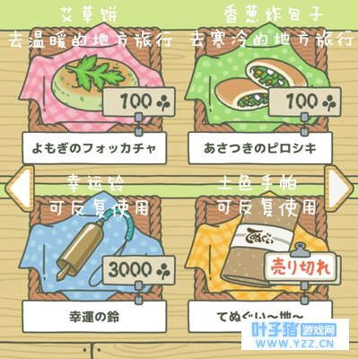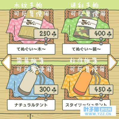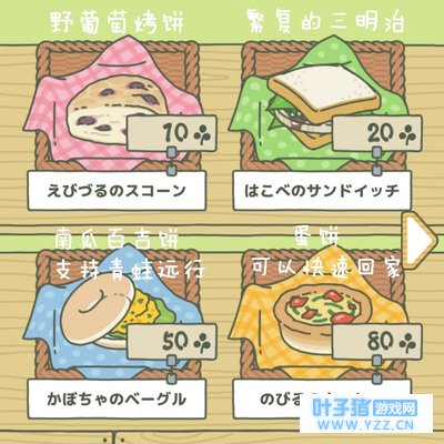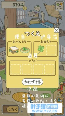 左下角为青蛙整理旅行物品,会出现蓝框和黄框。蓝框是行李,黄框是桌子,所以青蛙出门旅行的时候只有黄框。 青蛙旅行的前提是你得为它收拾好行李哦