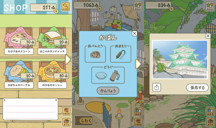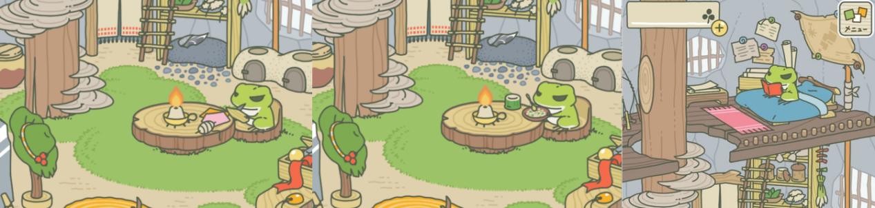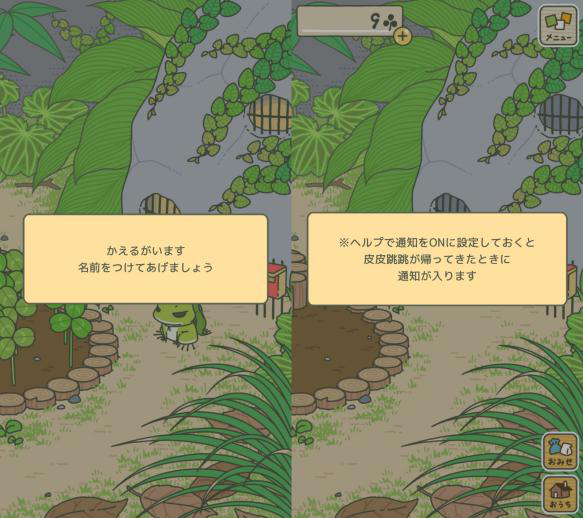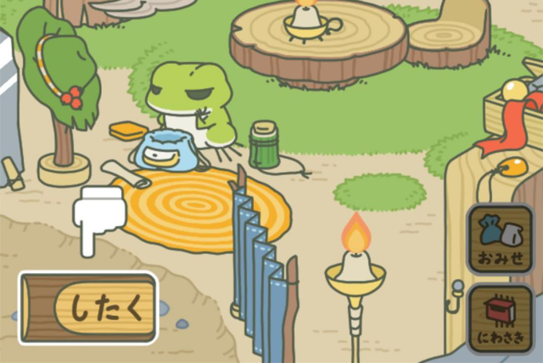 目前游戏只有日文版,这可能是最不方便的地方,但是因为操作步骤很简单,也不需要你种植三叶草,等着收,买旅行的物品,你的青蛙出门之后就剩等待它的回归。 很对人都很不理解,这样的游戏为什么会大火,我想可能它是一款最不让你操心的游戏,没有黑天暗地的练等级打装备,只有静静地等待,不是让你抓紧一切时间,而是让你忘却时间。