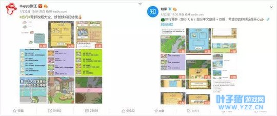 ▲ 《旅かえる》近期微博指数 1月16日之后,话题逐渐变热,而转折点就在1月22日这天,好几个大V突然发力,开始共同安利这款游戏,有推游戏的,有献攻略和翻译的,包括知乎。