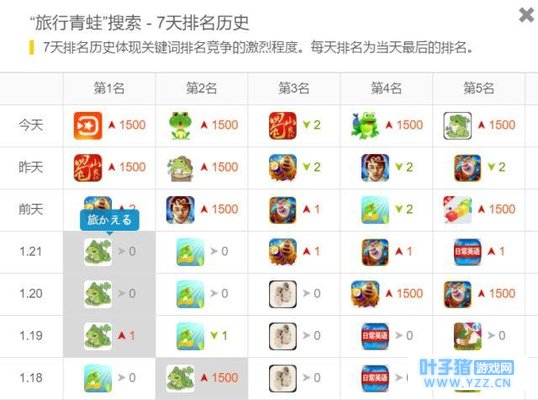 有理由相信“旅行青蛙”这个词的热度是被刷上来的,如下图,在1月22日之前,《旅かえる》在“旅行青蛙”下的排名非常不错,虽然当时搜索热度为0,但这个词的搜索量级应该已经非常大了。可是到了22日,《旅かえる》突然消失不见。