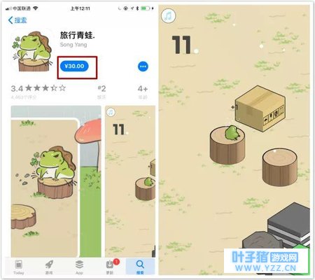 这个倒也不足为奇,蹭量一直是国内互联网圈的传统。然而,让人抓大腿的部分来了,也就在22日这一天,有一款叫《旅行青蛙.》的App上线了(不要忽略那个 “.” ),从截图上看,就是跳一跳的翻版而已。但是无论是icon还是截图,都非常有《旅かえる》的调调,夸张的是,人家定价30元!