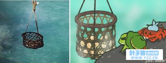 別府温泉,蛙儿看到的笼子是别府市大力推广的“极乐地狱观光”中,地狱蒸温泉蛋的制作道具。同样,它还是带了螃蟹一起去。