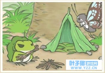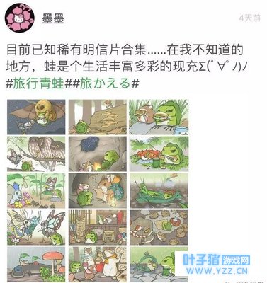 简单来说,就是你养了一只青蛙,当“蛙儿子”在家的时候,你需要收集三叶草,并且用这些三叶草兑换食物和旅行用品。 然后蛙儿子会带上你为它准备的背包,开始一场说走就走的旅行。 游戏的佛性之处就在于,当你点开游戏的时候,它是在家还是外出,全凭缘分。 旅行路上如果它心情好,还会给你寄回来明信片。 它静静地蹲在石头上看看名古屋 ▽▽▽