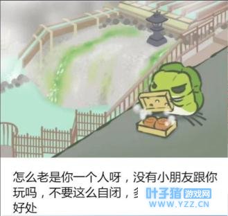 旅行青蛙 这款游戏无悬念、无谋略、无升级、无国战,也不会占用你太多时间。游戏的主角就是这么一只可爱的小蛙,你要在庭院为它收割三叶草获得货币,然后去商店为它准备各种食物作为它出门旅行的干粮,它就自己去“流浪”,而它旅行的路线目的地都不受你的控制。但是它会给你一些小惊喜,比如它会给你寄来旅行的明信片见闻,更多的时候其实是你在等它回来。 “儿行千里母担忧”,其实就是这么简单的一个虚拟的亲子关系吧,方便了那些没时间或者没精力的朋友们来打发时间。在这款好像无事可做的游戏里,你可以看到它时而看书、写日记,时而吃饭、削木头,然后去旅行给你带回来土特产和给你寄明信片。你无法跟它交流,它像一个有着自己想法的青少年,自己去做事情去计划去旅行。你会把自己的情感寄托于它:奇怪这小蛙咋不出门,背包食物都整理好了,却看了一下午书、削了好久的木头,毫无一点动静。