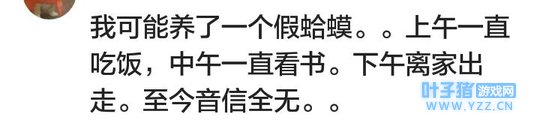 点击右上角“关注”,每天为你分享更多有意思的评论旅行青蛙这几天火得真的是不要不要的 也牵动了整个佛系青年的父母心 比如我 我儿子到现在还没有回家, 这个“呱娃子”, 真让爹娘不省心。 自从生了他之后, 操碎了心了, 大半夜不回来, 睡不着啊, 儿行千里母担忧啊。 原来不只是我一个人这样,还有很多人都有一个没回家的儿子。