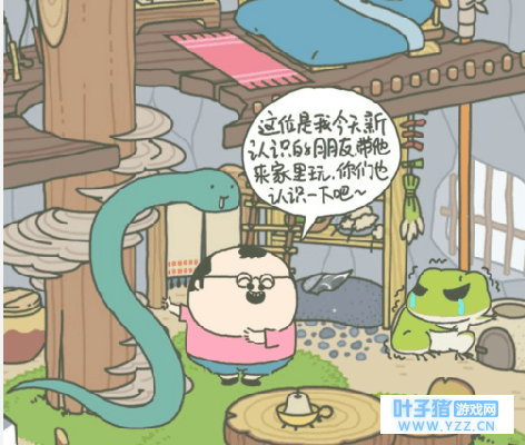 你家青蛙太宅了,因此你要多给他交一些朋友。比如蛇,哈哈哈哈!让他们认识一下嘛!咦?我家呱太你怎么了?
