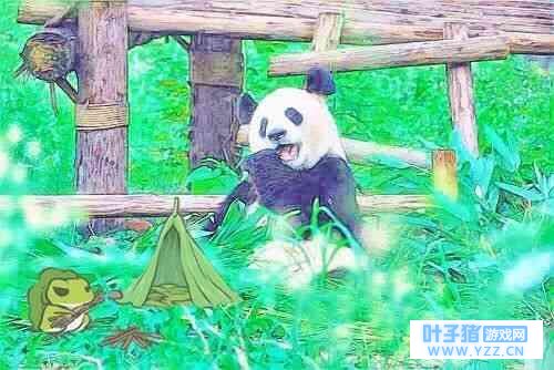 带着川大荷塘里采来的荷叶 呱呱又去熊猫基地找滚滚玩儿啦 热情好客的滚滚邀请它在这里过夜 呱呱用荷叶扎了个帐篷 搬了些木头,准备晚上烤火取暖 毕竟呱呱不像滚滚穿着毛大衣 天黑了还是会冷吧