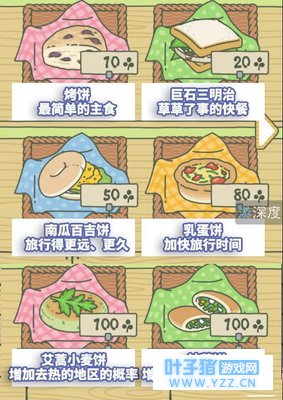 中期:分清楚商店中道具、便当的作用 首先,玩家姥爷请谨记:如果包袱和桌上什么便当都没有,蛙宝是会离家出走/宅在家中不出门的!这时候需要玩家再次准备好食物,蛙宝就会恢复行动了。 而玩家可购买的物品分为两类:便当与道具。六种便当的功效请各位看下图: