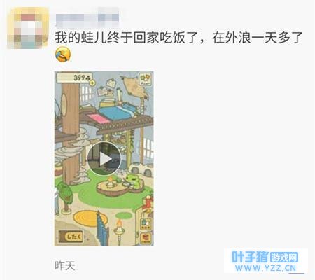 老公养不熟,儿子不回家 旅行青蛙游戏,让人体验了一把有孩子的生活,担心孩子出门掉坑里的安全问题,给他准备好粮食和钱,看到孩子回家急忙为他准备口粮,看它带回来的照片和游记,知道他一路过的开心,也就欣慰了。但最担心的是他出门再也回不来,比如……变成了烤青蛙。(青蛙日语中与“回家”同音)