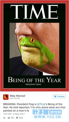 翻译:川普介绍他的最新内阁成员,青蛙先生 这位叫Mike Mitchell怀着怎样的心情,为川普大人认认真真的画了各种妆容,全部都是青蛙先生,不知道你们的蛙儿子看到他的远远方小伙伴会怎么想?