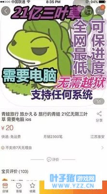 因为操作简单 节奏缓慢 这款游戏也被网友戏称为“佛系养蛙” 游戏中,三叶草的数量决定了青蛙的装备和目的地,但三叶草生长周期缓慢,购买费用较高,因此,部分商家瞅准商机,针对iOS手机用户,推出“花费20元即可购买21亿无限三叶草”服务, 通过“外挂”操作,让玩家轻易获得大量三叶草 。