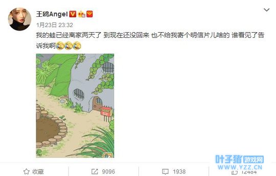 果然是出自书香门第的蛙!但跟她家蛙完全不同的是王鸥她们家的蛙! 王鸥家的蛙已经离家出走两天了,你们谁看着她家蛙了,@王鸥一下呗,在线等,挺急的。