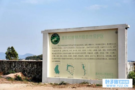02 红树林自然保护区 惠东红树林自然保护区,位于惠东县稔山、铁涌等镇的沿海海岸线边,属湿地类型的自然保护区。保护区总面积为8000亩,其中现有红树林1200亩,种植发展红树林6800亩,林中栖息了苍鹭、黄嘴白鹭、金斑行鸟等17种候鸟共计3万余只。1999年12月,惠东县人民政府已批准建立为县级自然保护区,2000年12月,经市人民政府批准为市级自然保护区。