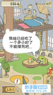 但是看看它的玩法,打开界面—给蛙起个名字—收割一下三叶草,这相当于钱,可以用来帮蛙购买各种吃的、用的—买了东西后放进蛙的背包,然后……就不是你可以控制的了……这只青蛙就这样一只蛙默默地生活,有时候吃东西、有时候看书,兴致来了,没有任何预兆的,来一场说走就走的旅行,偶尔给你寄回来一些明信片。你也不知道它什么时候回来,总而言之,就是两个字:“随缘”。所以,你可以看到一大群人整天像老母亲般的操碎了心……