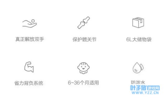 这款包包集腰凳、背带、妈咪包于一身 ,可以装下宝宝出行所需的奶粉、尿不湿等全部物品,更重要的是它能轻松背负6-36个月的宝宝,仿登山包舒适减压背负系统为宝妈减负同时解放妈妈的双手,更好地和宝宝互动,让妈妈也能轻松出行。