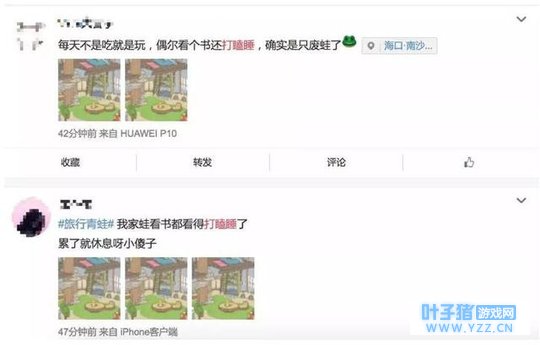 不过,《旅行青蛙》显然更为“佛系”。《猫咪后院》的玩家不同时间登录游戏可以大概率收集到新来的萌猫,《旅行青蛙》的玩家却有可能好几天都看不到小蛙有什么活动——它可能好几天都待在家看书,也可能好几天都在旅游却不发送任何明信片及相关消息。
