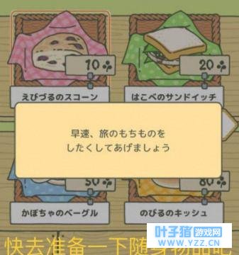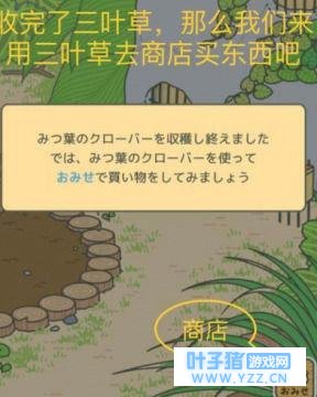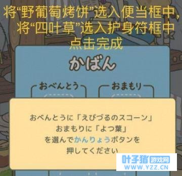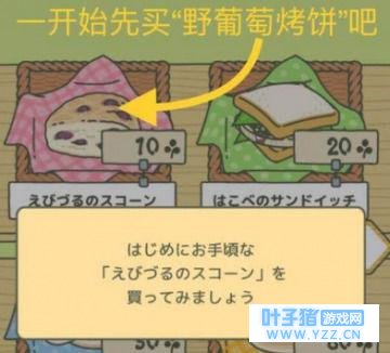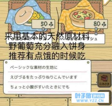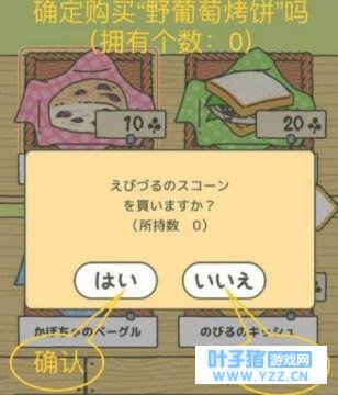 旅行青蛙 【 购买便当 】用收割获得的18枚三叶草去商店买便当时,点击“野葡萄烤饼”,此时出现红框圈定,再点击一次就会出现购买确认窗口了。
