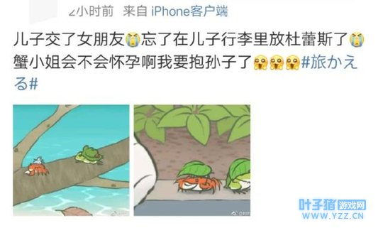 1.角色代入 角色代入是《旅行青蛙》游戏走红的一大原因。大多数用户都称自己的蛙为“儿子、儿砸、崽崽”,并自称为等蛙回家的老母亲/爹。