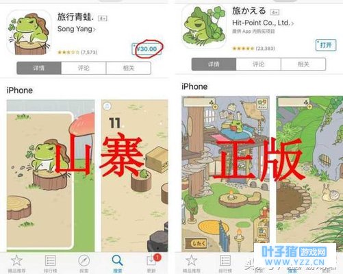 一个游戏火了自然也会有其他人效仿,最近一个也叫旅行青蛙的山寨游戏出现在了APstore,这个游戏的画风就很粗糙,而且下载还要钱,没听错还要三十块钱,这让很多不细心的网友都上了个当,下载后发现不是正版纷纷卸载去平台骂。