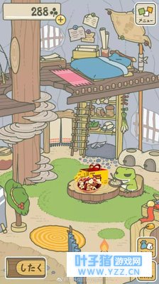 这大概是一款玩家最没有存在感的游戏 游戏场景分为青蛙的房间和青蛙的庭院 玩家可以利用庭院的三叶草为青蛙准备旅行的装备 (这可能是你唯一能做的事情) 其他时间,青蛙无论是在家里死宅还是出去旅行 玩家都无法干预 只需要安静地等待就好了