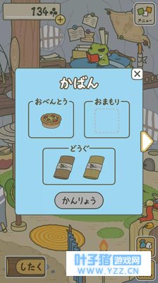 有了钱之后,就可以给你的呱儿子买东西了,游戏里可以买的东西也少得可怜,一共分为三类:第一类,食物,就是各种吃的;第二类,幸运符,顾名思义;第三类,道具,包括帐篷,碗之类的。