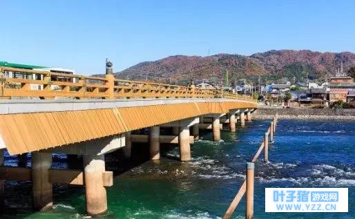 位于京都府北部的天桥立沙洲长3.2公里,宽约40到100米,由地壳作用形成,是大自然鬼斧神工的结果。8000多株松树遍布洲上,将阿苏海和宫津湾“一分为二”,蔚为壮观,与宫城县松岛、广岛县宫岛并成为“日本三景”。据说像蛙儿子一样倒立观赏能达到最佳观景效果。 近畿地区,京都府,宇治桥