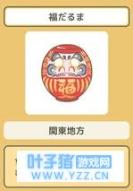 福だるま 招福达摩 关东地区 新年在神龛装饰的祈福达摩的总称。距今约300年前,少林山的开山始祖心越禅师在纸牌上描绘达摩画,迎接福运。第9代住持东狱和尚将其发展成为了现在的样子。 招福达摩的圆形代表着家庭、社会的圆满;红色来自朱红色的官袍,金色代表着佛光照耀的样子。 游戏中对这个招福达摩偶对介绍是:“这个鲜红装饰品的脸有点吓人,还没有画上眼睛。”之所以 没有画眼睛 ,是因为在日本有着这样的习俗:人们买了新的达摩时,会 心怀愿望在左边 (面向正面的右边)画上左眼,待 心愿实现 时,便心怀感激在右边(面向正面的左边)画上右眼。