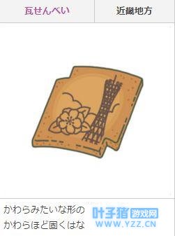 瓦せんべい 瓦煎饼 近畿地区 这是一种 用砂糖调味的瓦形干烤甜煎饼 ,煎饼表面大多有用烧制的焦痕描绘出的图案或文字。