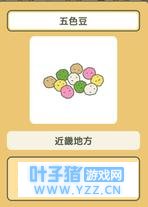 五色豆 五色豆 近畿地区 五色豆是指 染了五种颜色的糖豆 ,是京都的著名点心之一。五色豆需要先将豆子炒熟,然后包裹上五彩色的糖衣,颜色主要是 白、青、红、黄、黑 ,其中白色代表金,青色代表木,红色代表火,黄色代表土,黑色代表水,合起来就是大地的象征。