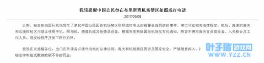 经过了漫长的飞行总算在澳洲落脚啦,赶紧给老妈来张明信片吧!不过要注意,根据澳大利亚相关法律规定,在澳洲海关边境管制区域,尽量不要使用手机! 澳洲海关和机场涉及国家安全和个人隐私,在海关禁区随意闯入和拍照都是严格禁止的。 之前布里斯班国际机场发生了多起中国公民在机场禁区拍照、打电话而被警告罚款的事件。中国驻布里斯班总领事馆也发布了警示公告: