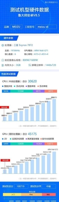 三星全网通利器 流畅不卡顿 除了屏幕之外,魅蓝S6最值得关注的点大概就是它打破了千年联发科的局限,采用了三星首款全网通Exynos 7872处理器,而且其LTE还同时支持CDMA协议和2CA,调至解调器的下行速度更是高至300Mbpa,上行速度也不弱,达到了150Mbpa,使魅蓝S6在通讯速度方面有了很大的提升。此外,根据安兔兔机构对三星该款处理器的测试来看,无论是CPU跑分还是GPU跑分都非常强悍,可以说作为一款千元机,其水平已经达到了中端机的高度,性价比非常高。