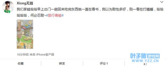 微博截图 这样,你们的“蛙宝宝”算是能茁壮成长了。 游戏其实很简单,也是类似养成系。在游戏中,你将拥有一只青蛙,只要帮它收拾好行李,他就会自动出远门在外结交朋友。旅途中它会给你寄送明信片,回来时会带一些土特产。