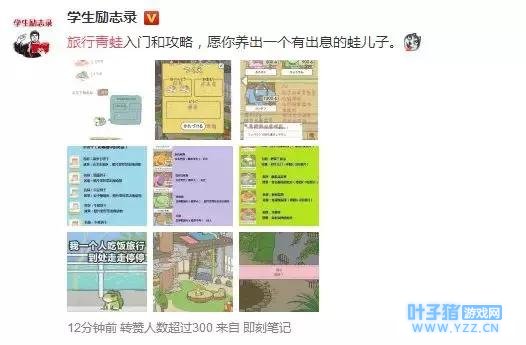 现在什么游戏最火?王者农药已经out了,现在刷爆朋友圈的是这款“养青蛙”的游戏~温暖精致的画风,简单的游戏方式,极强的情景代入感,甚至连时间也不用花太多……《旅行青蛙》深得“佛系玩家”们的心。 这款游戏短短数日就已问鼎App Store免费榜下载第一位,今天, #旅行青蛙# 的话题阅读量更是突破8.3亿次。