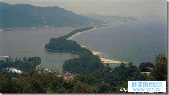 天桥立是簇拥着约7,000棵松树的长3.2公里、宽40~100米的长条型沙洲。在日本京都府西北部日本海宫津湾内。呈由于这里位处京都府,就是旧时代的天皇、国家政府所在地点,附近发现又有古墓群,挖掘出来的葬品有相当的历史研究价值。