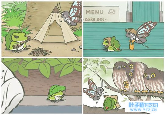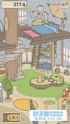 Developed by Japanese company Hit-Point, Tabikaeru was included as a free download in the Apple store on Dec 6 and became an internet hit after being introduced to China in early January. The game is available for iOS and Android systems, but the Apple store only offers a Japanese version while Android has Chinese and Japanese.《旅行青蛙》由日本游戏公司Hit-Point开发,12月6日在苹果商店上架,免费开放下载,1月初进入中国后在网络上迅速蹿红。这款游戏适用于iOS和安卓系统,但苹果商店仅可下载日文版,而安卓商店则有中文版和日文版。 Tabikaeru is mostly a game about waiting on animals. You play house-sitter and friend to a little frog that likes to go on trips around Japan. You’ll pack his backpack with a bento box lunch, a lucky charm, and some travel gear, then send him off. While he’s gone, you can harvest clovers in his garden (which you can trade for more travel gear and food) and greet guests that come to visit. The items you send with him determine where he goes, what pictures he sends back for your album, and what souvenirs he brings with him. There’s a gallery of collectible souvenirs to fill, as well as food presents you can offer to guests who show up at the house.《旅行青蛙》是一个等待“蛙”归的游戏。小青蛙喜欢周游日本,而你的角色就是他的管家兼朋友。你会在他的背包里装上便当盒、幸运符和一些旅行装备,然后送蛙远行。当他出门时,你可以收割花园里的幸运草(你可以用幸运草交换更多旅行装备和食物),并招呼来家里做客的客人。你为小青蛙打包的行李决定了他会去哪里、给你传回什么照片、带什么土特产回来。陈列室存放着旅行纪念品,以及你可以用来款待客人的食物。
