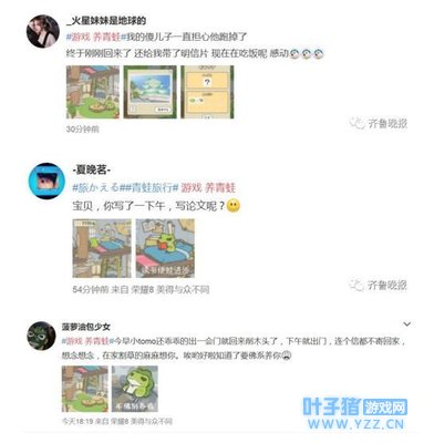 世界就是如此瞬息万变,似乎在一个礼拜以前,整个社交网络还都在和李泽言谈恋爱。 然而一个礼拜后,微博、朋友圈的话题已经从“养男人”变成“养青蛙”。 “有的人表面光鲜,背地里可能连一只蛙都没有......”这个网络上流传的段子中提到的蛙,就是人气手游《旅行青蛙》中的主角——一只时不时就背包出去旅行的小青蛙。